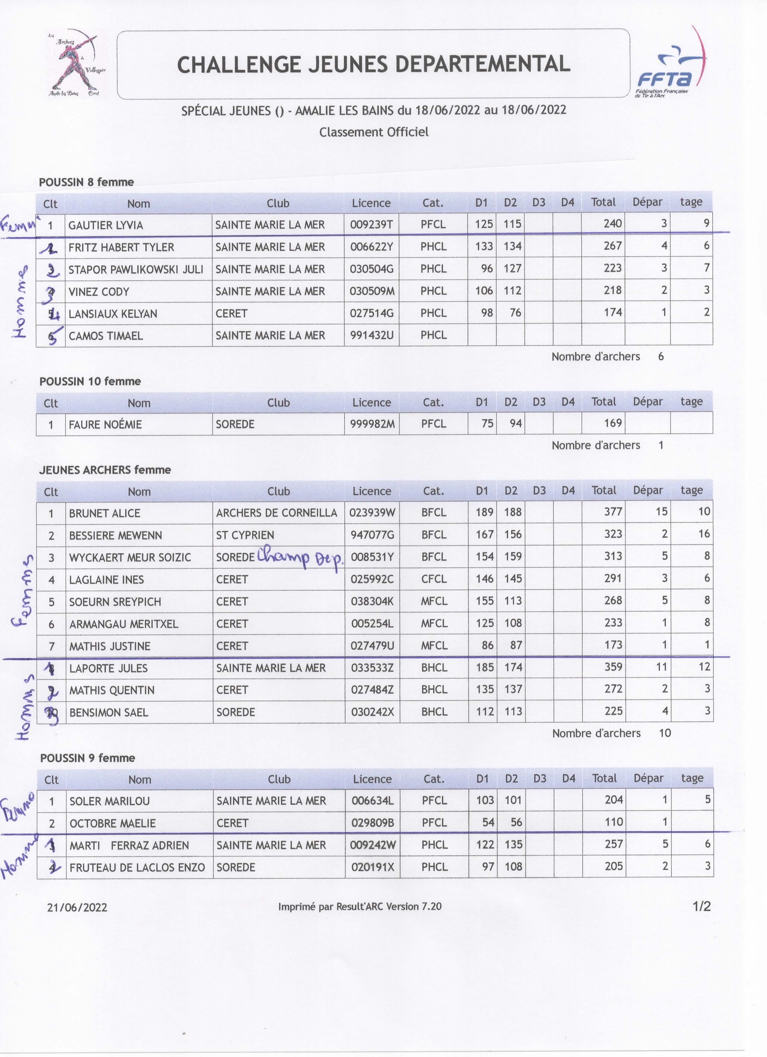 résultats championnat départemental jeunes Amélie les Bains 18/6/22